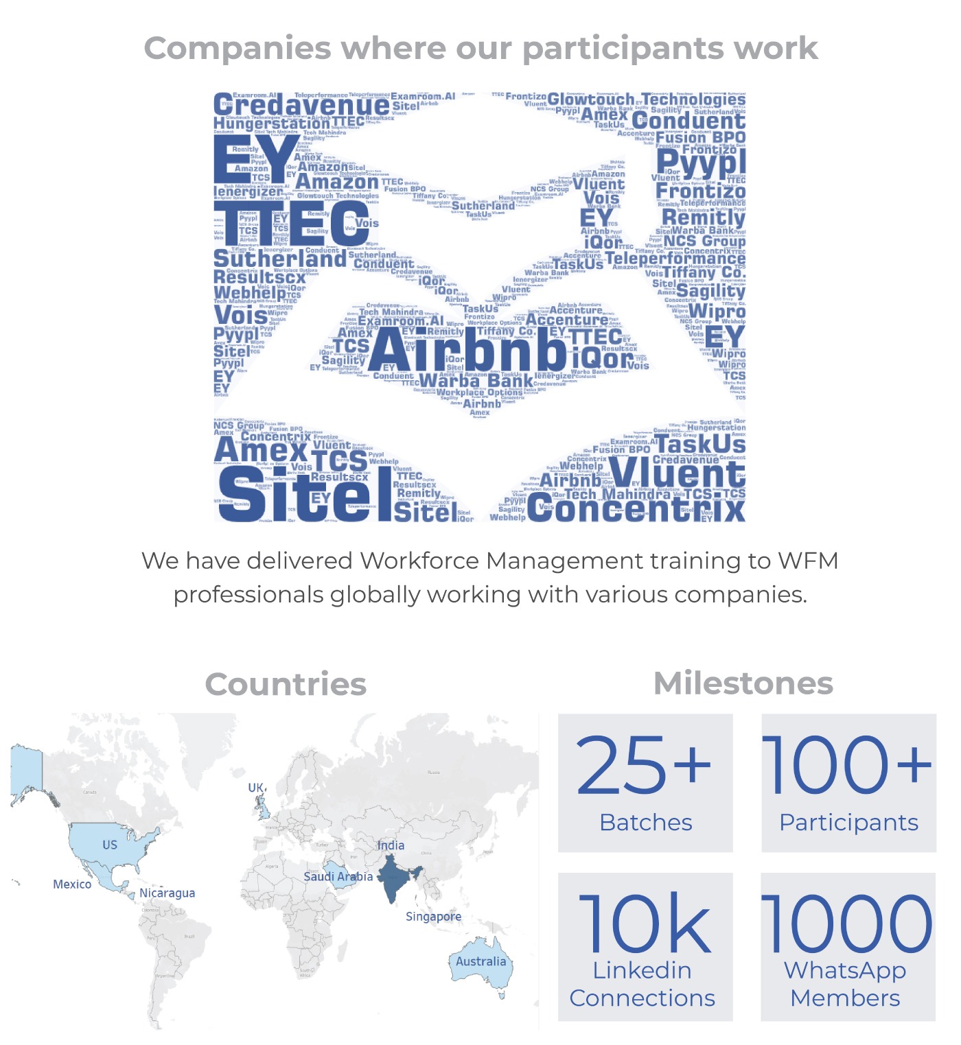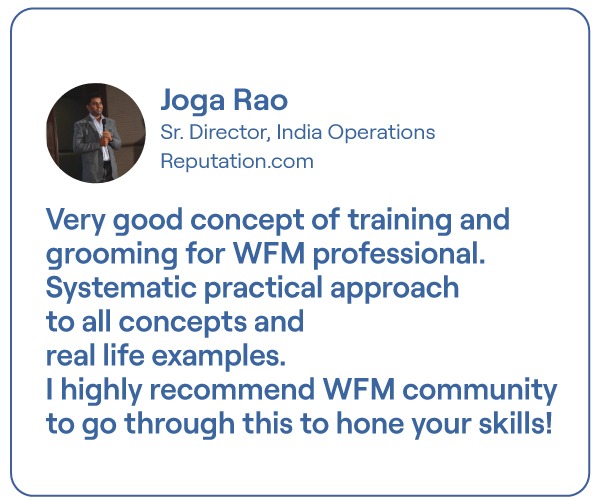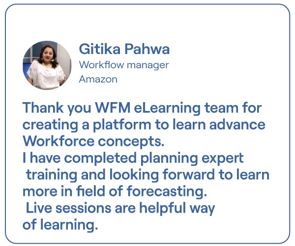 This site is created by Workforce Management experts who want to offer their expertise to address the training and development needs of WFM professionals. The goal of this site is to provide a platform for WFM professionals globally to Learn, Connect & Excel.